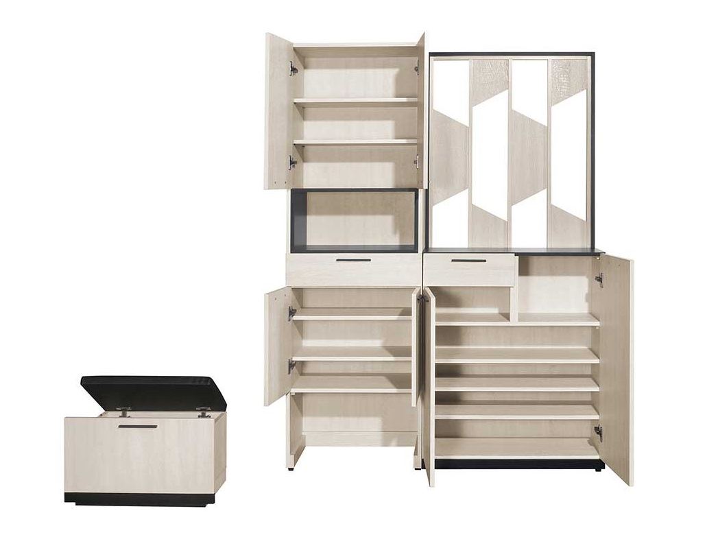 商品組合示意圖 商品內構示意圖 2x6.5尺玄關鞋櫃(附4片活動隔板.2個透氣孔) (排鑽鑽孔,活動隔板可隨意調整) (附抽屜造型收納腳椅x1) 2.7x6.5尺屏風櫃(附3片活動隔板.1個透氣孔) (排鑽鑽孔,活動隔板可隨意調整)