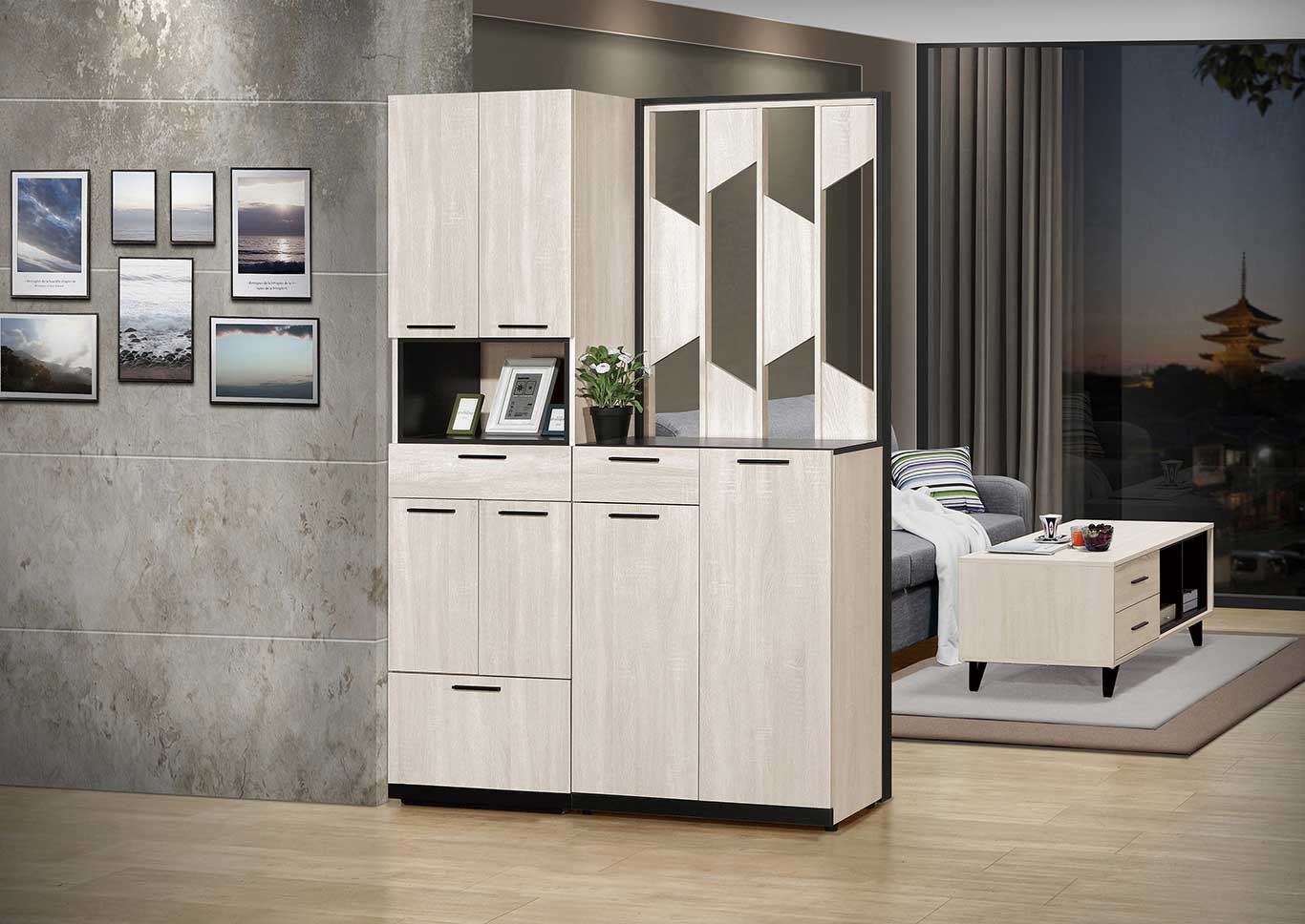 4.7x6.5尺組合鞋櫃(全組):寬140x深38x高197公分 2x6.5尺玄關鞋櫃:寬60x深38x高197公分 2.7x6.5尺屏風櫃:寬80x深38x高197公分