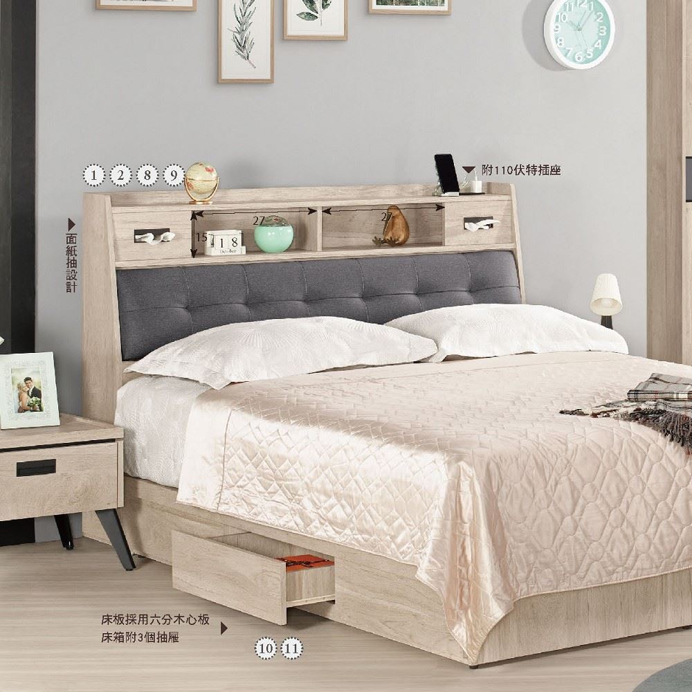 1.材質:正面.側板採用符合國際標準低甲醛防蛀木心板 2.塗裝:採用PU耐磨耐水塗裝 3.表面:專利技術耐磨浮雕木紋,觸感猶如實木 4.背板:美背處理 5.床頭:台灣製抗貓抓皮革(不可拆洗)+高密度泡棉,附110V插座使用,面紙抽設計 #下單前請先詢問有無現貨!