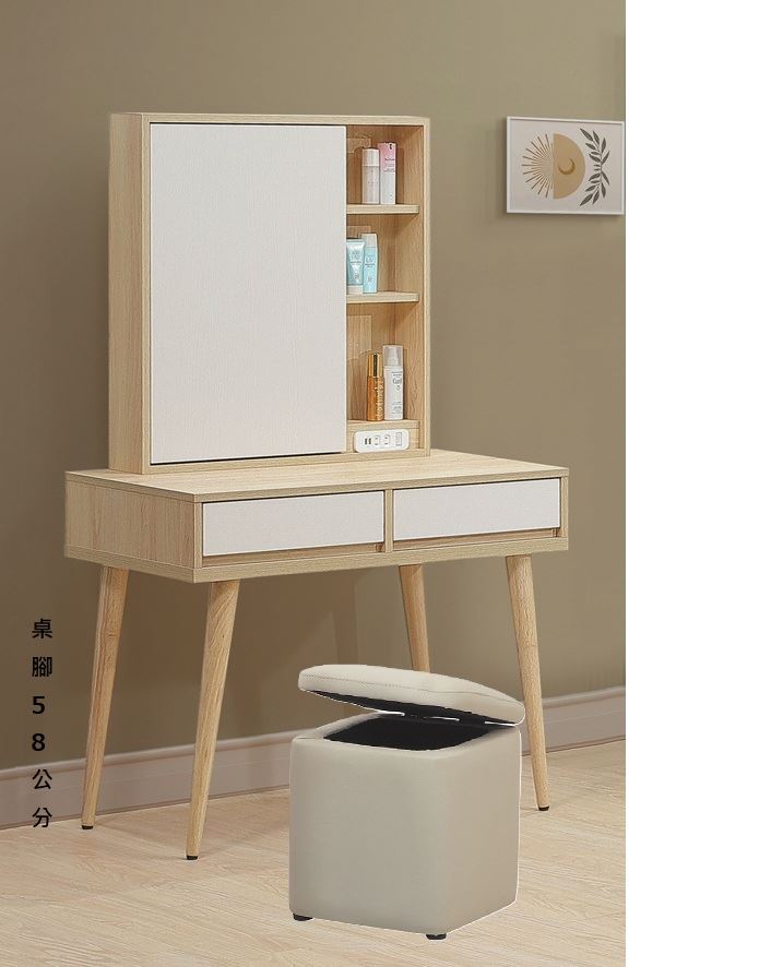 1.1mm 厚皮封邊 斜把手 2.裝潢級板材 鋼珠滑軌 油壓鉸鏈 3.美背 實木腳 4.化妝台:附USB插座 #下單前請先詢問有無現貨!