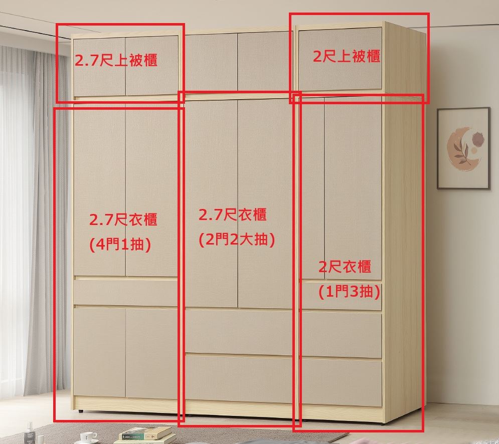 2.7尺衣櫃(4門1抽)