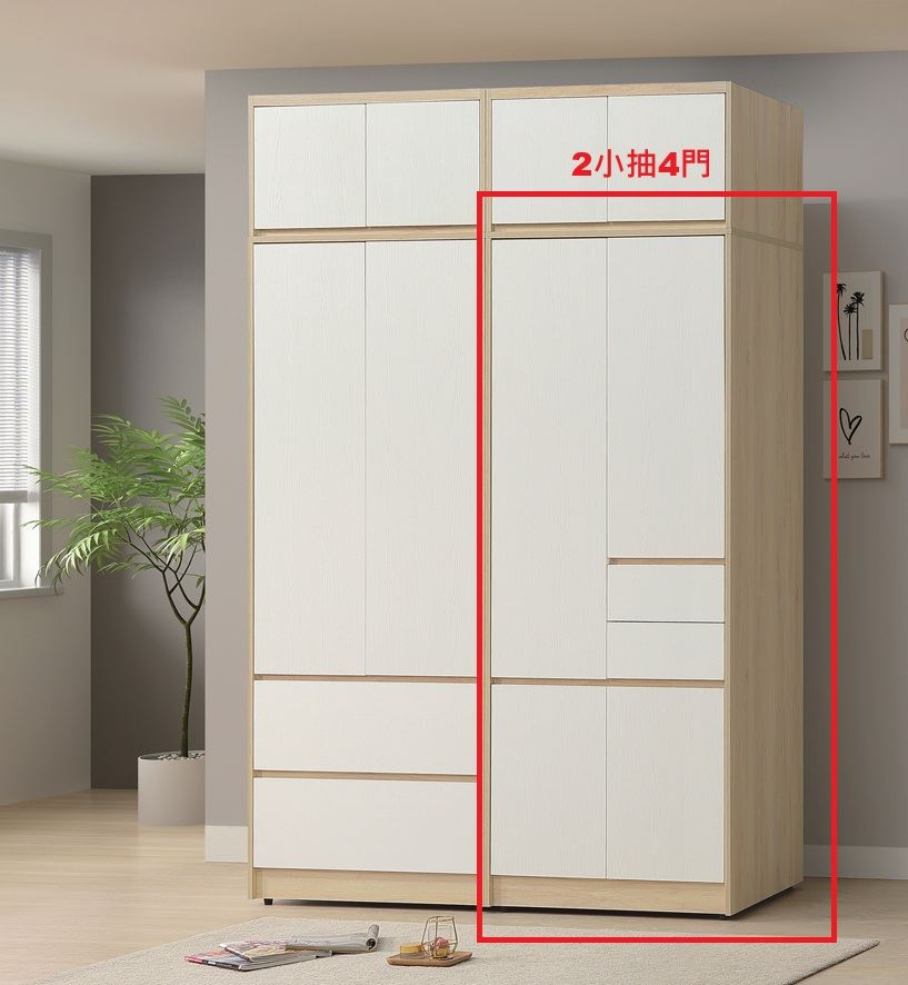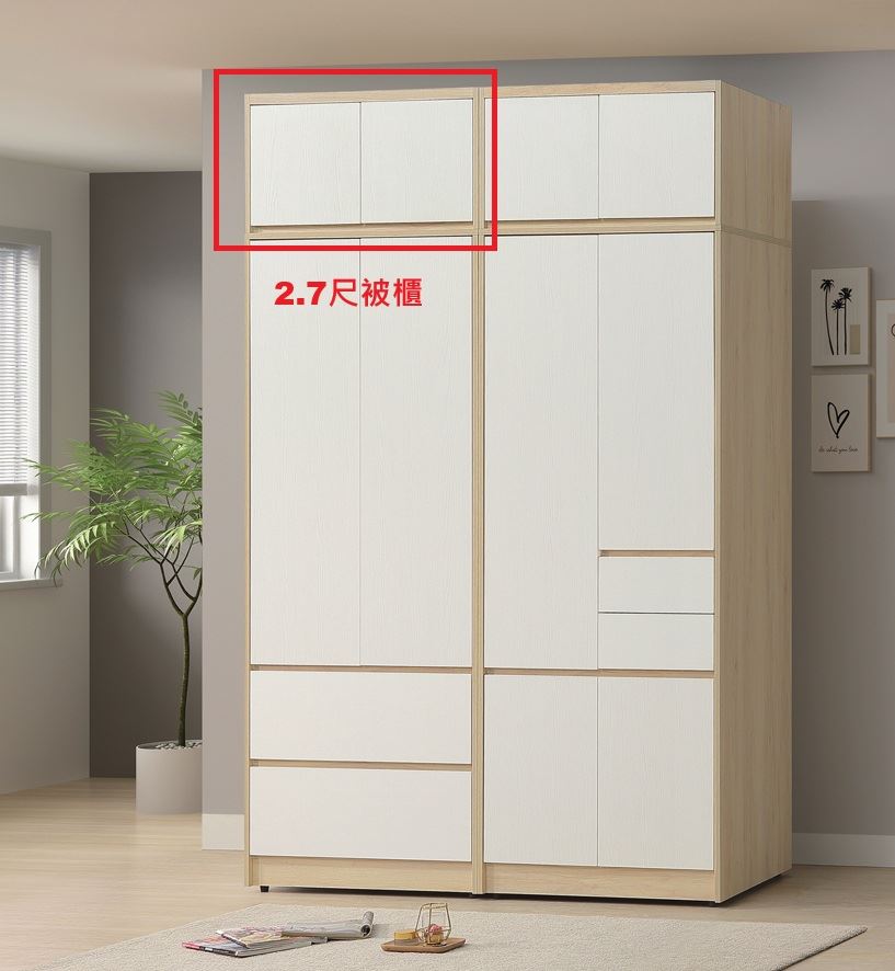 2.7尺白門2小抽4門衣櫃:寬81*深60*高190公分