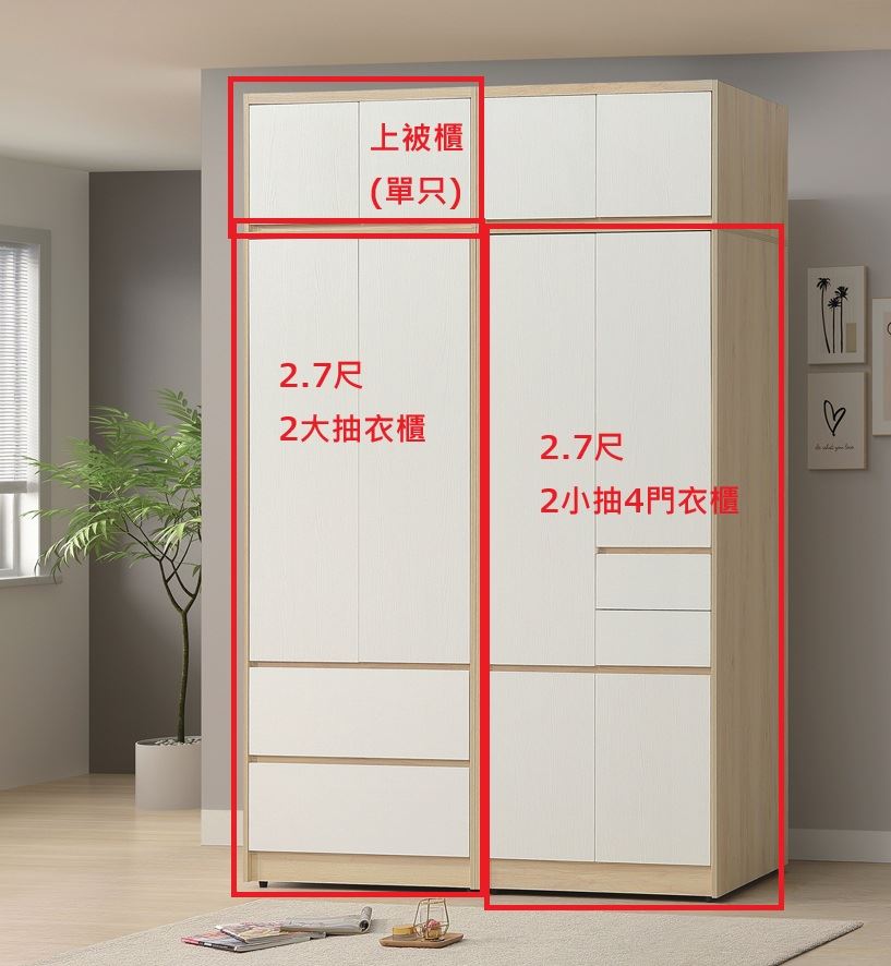 2.7尺2小抽4門衣櫃