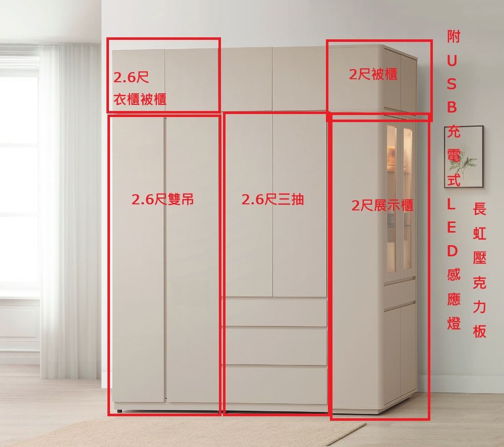 2.6尺衣櫃被櫃:寬80*深60*高43.5公分