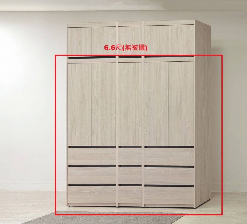 6.6尺(無被櫥):寬200.5x深59.3x高201.8公分