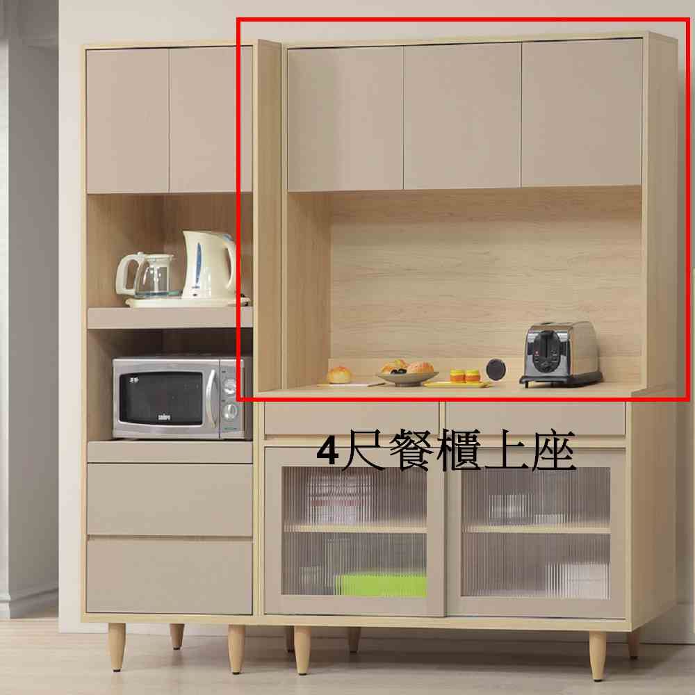 商品示意圖 6尺餐櫃(全組) 6尺餐櫃(4尺下座) 4尺餐櫃(全組) 4尺餐櫃(上座) 4尺餐櫃(下座) 2尺電器櫃 1.5尺電器櫃 中島櫃